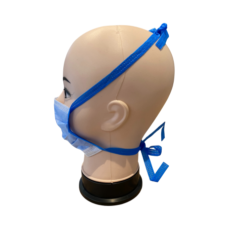 Surgical face masks with ties and elastic bands, made of three layers of non-woven fabric, offer effective protection against particles and fluids. Their 3-layer structure includes a fluid-resistant outer layer, a filtering middle layer, and a soft inner layer for skin comfort. Made of non-woven polypropylene, these masks are lightweight and hypoallergenic, minimizing the risk of irritation. The ties allow for a secure fit by tying them behind the head, while the elastic bands offer quick and easy application. Equipped with an adjustable nose clip, they ensure a good fit and optimal seal. Compliant with international safety standards, they are ideal for medical and surgical environments.